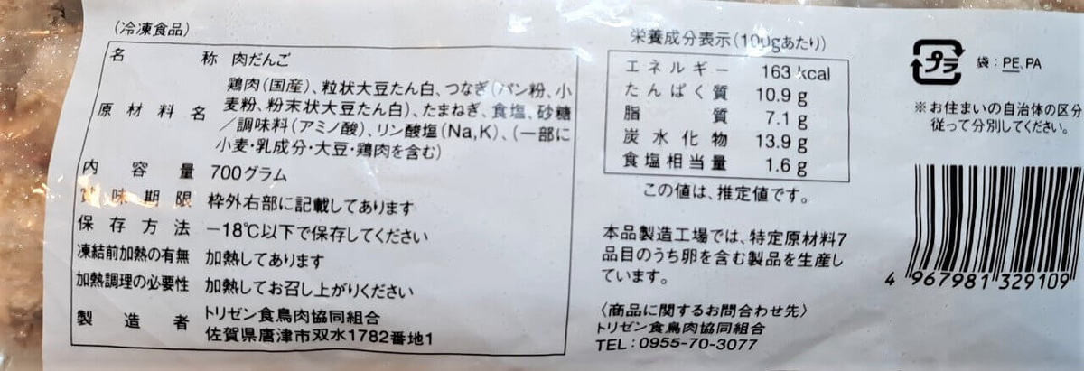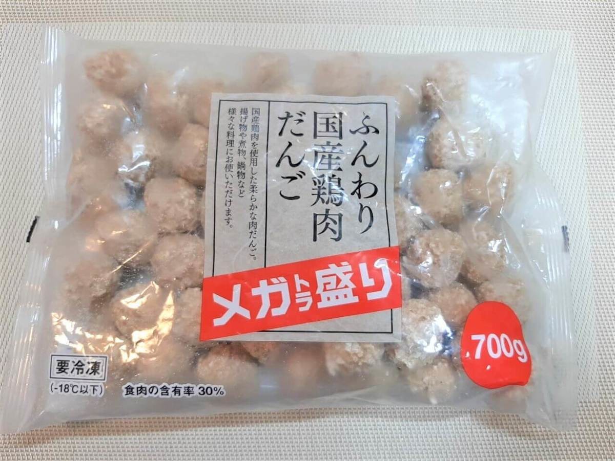 冷凍コーナーに置いてある大袋入りの鶏肉だんご。