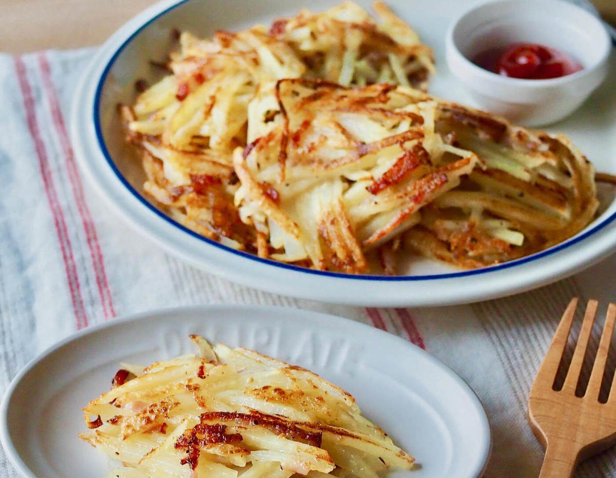 細切りにしたじゃがいもで作るガレットは、外はカリっと、中はモチモチとした食感を楽しめます。じゃがいもの味わいをシンプルに楽しめるメニューで、たくさん消費することができますよ。