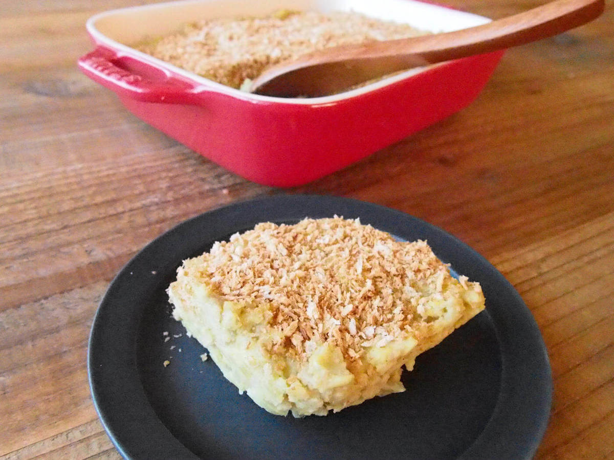 コロッケの材料を耐熱容器に入れて焼くだけで、まるでコロッケのような味わいになるメニューです。丸めたり揚げたりと面倒な工程がないので、あっという間に完成します。