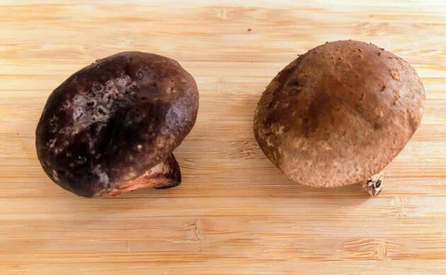 しいたけは腐ると見た目やにおいが大きく変化するため、簡単に見分けることができます。実際に新鮮なしいたけと並べて比較してみました。