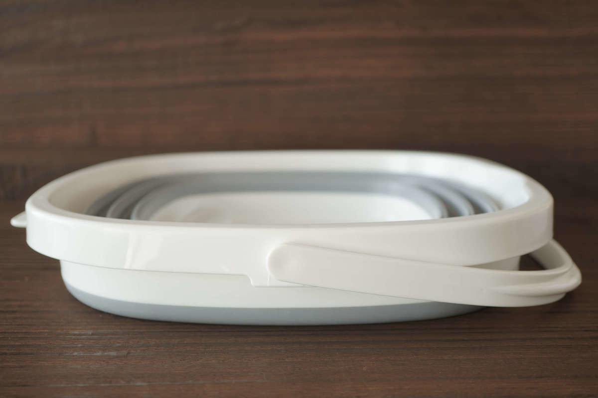 衣類や靴、キッチングッズや加湿空気清浄機の部品のつけ置き洗いなどの掃除用具として、キャンプやアウトドアではゴミ箱として使用するなど様々な使い方ができます。