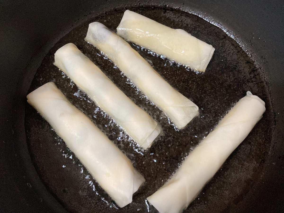 普段の中華春巻きを上げる要領でほんの少し強めの火加減にしたら、見事に焼き色が濃くなってしまいました。