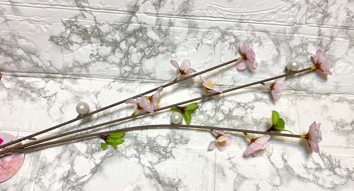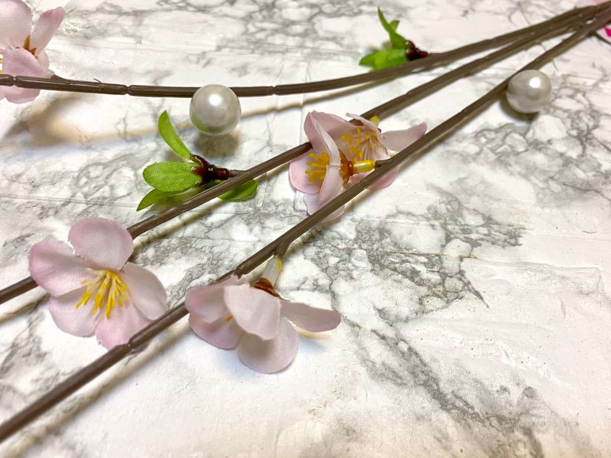 桃の花だけでなくパールも付いており、上品な雰囲気が特徴。そのまま飾り付けてもおしゃれですが、写真撮影の小物としても活躍してくれます。