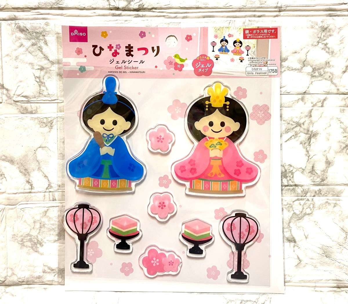 こちらは、ガラスや鏡に取り付けられる「ひなまつり ジェルシール」。