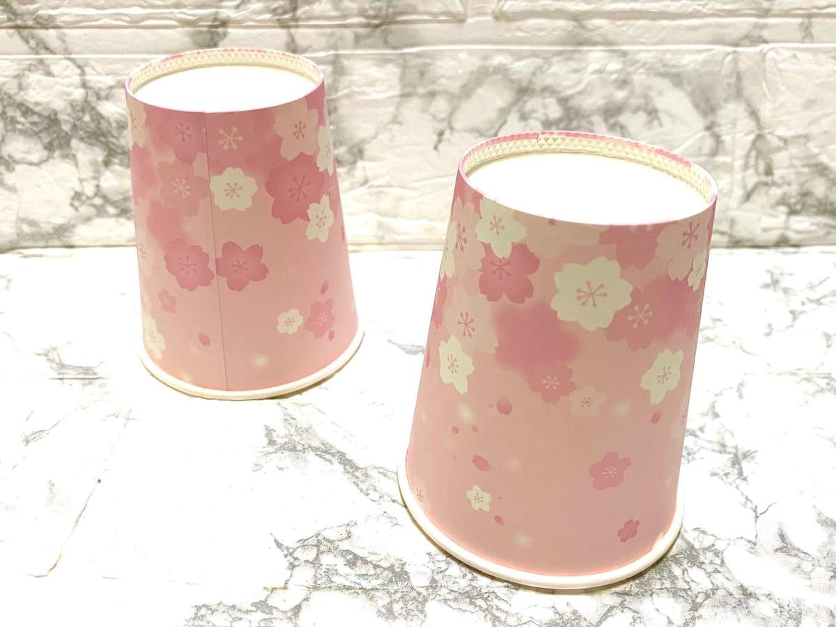 ピンクベースに桜のデザインが施された、春にぴったりの紙コップ。飲み物だけでなく、お菓子などの食べ物を入れてもおしゃれ◎
