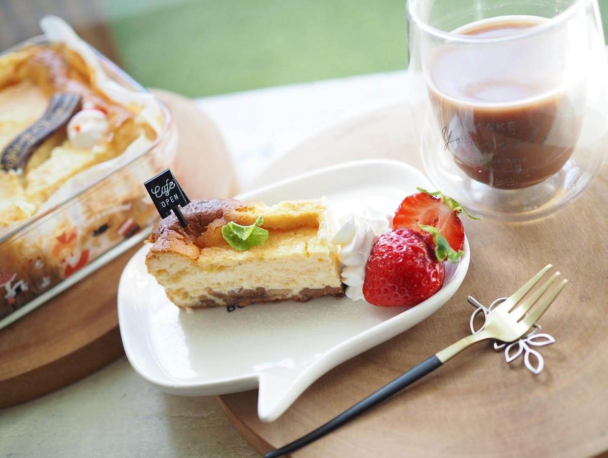カットしたチーズケーキに、業務スーパーの「冷凍アマンディホイップ」を絞れば、おもてなしにもぴったりのカフェ風ビジュアルに♪