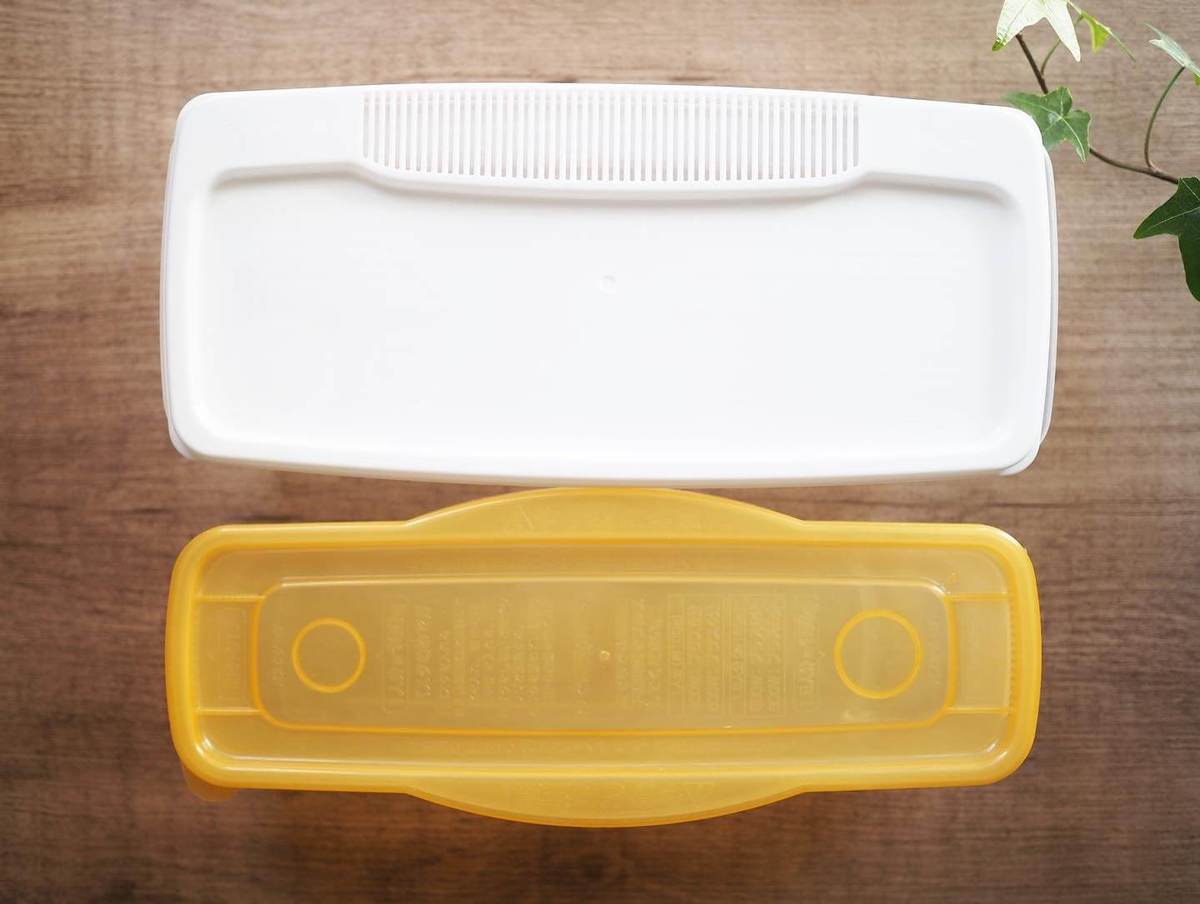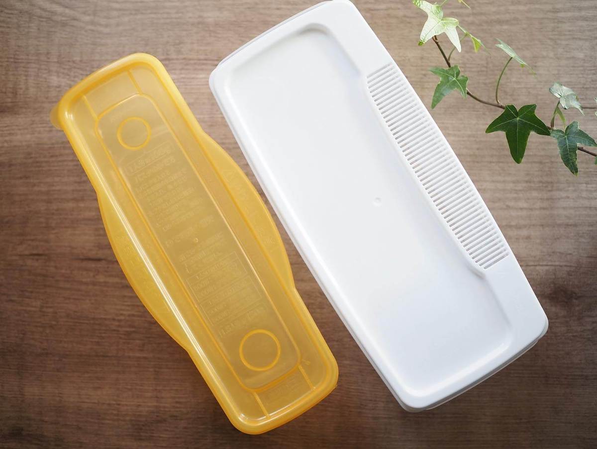 もともとあった初代と比べてみると、蓋の色も黄色からシンプルなホワイトになっていてキッチン雑貨の色数を増やしたくない方にも嬉しいビジュアルですね。
