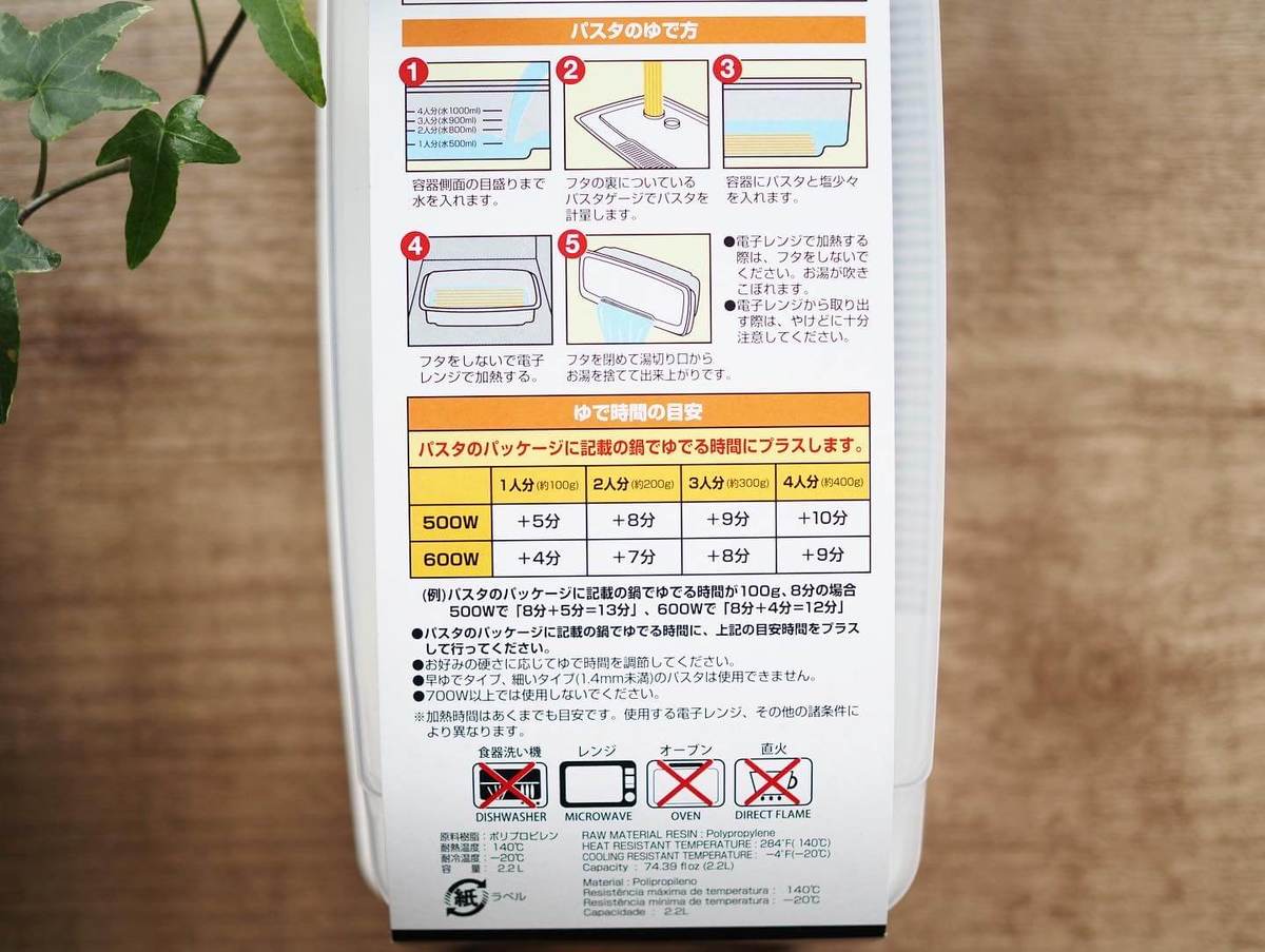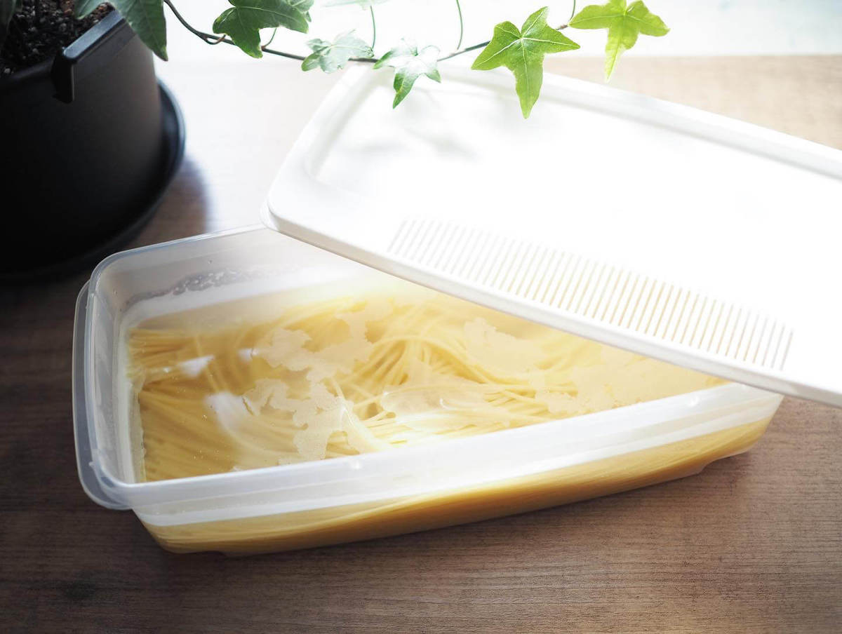 使い方も簡単で、ケースの中に必要なパスタを入れて必要量の水を入れるだけ!鍋も火も使いません。