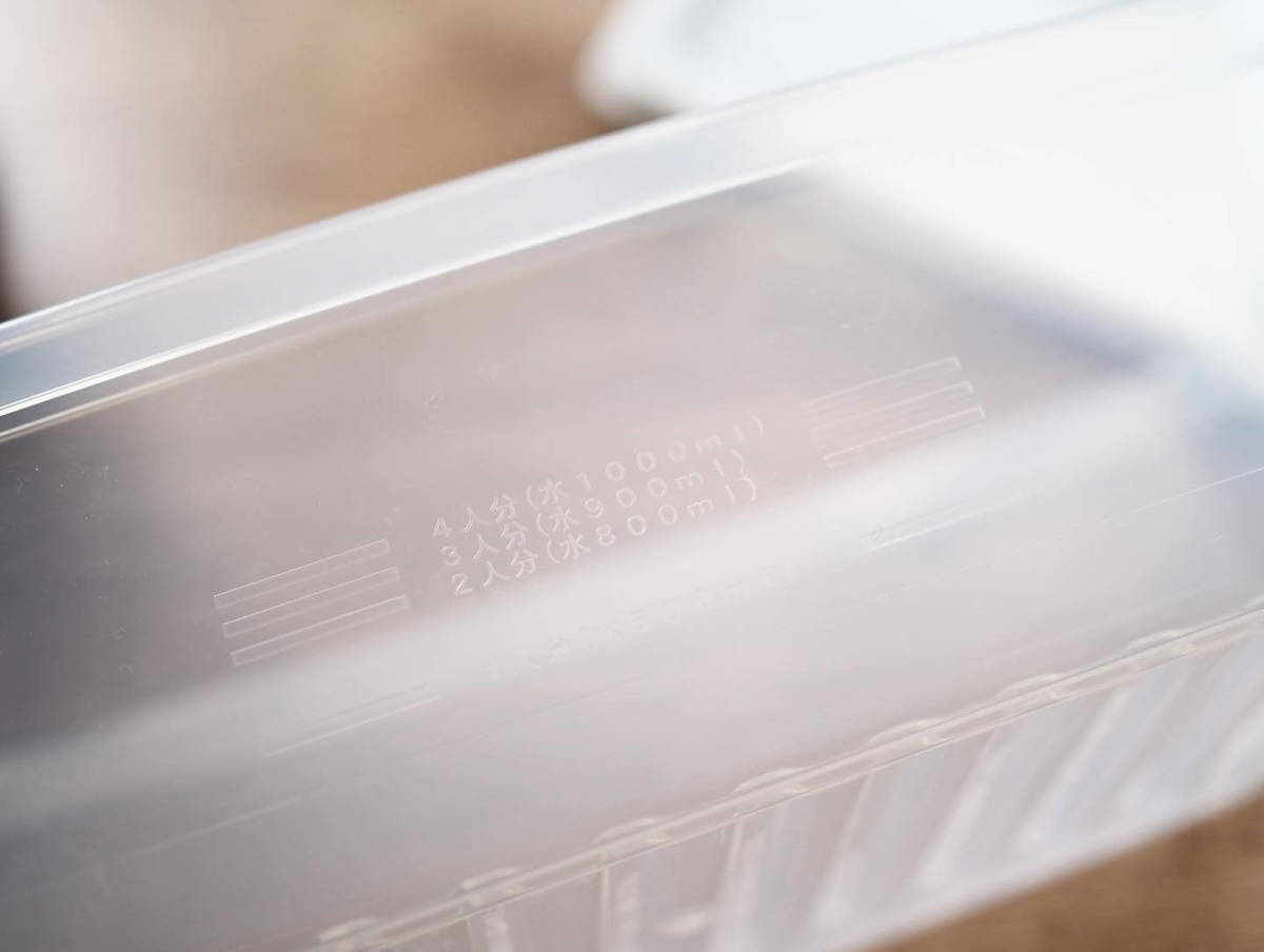 側面には必要な水の量の目盛りもあるので、計量カップ等も不要です。