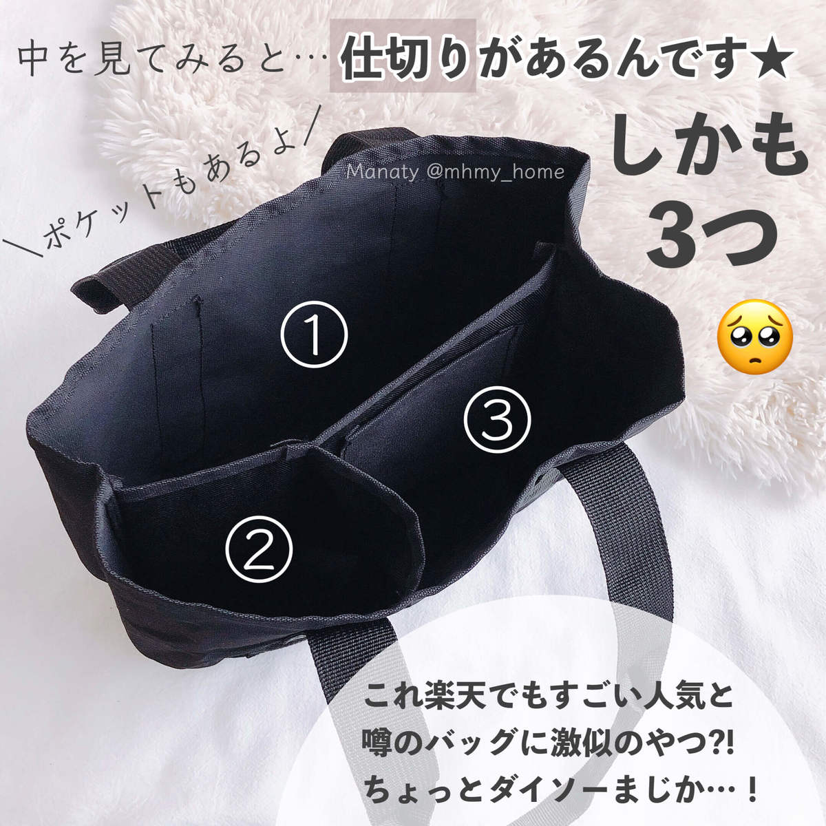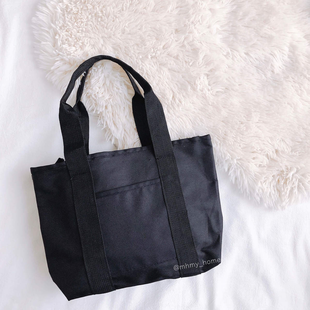 カラーは紹介したブラック、グレーの他にネイビーもありました。シンプルなので使いやすくて軽い!マチもしっかりあって大容量のこのカバン、まさかまさかの220円(税込)と目を疑う価格でした。