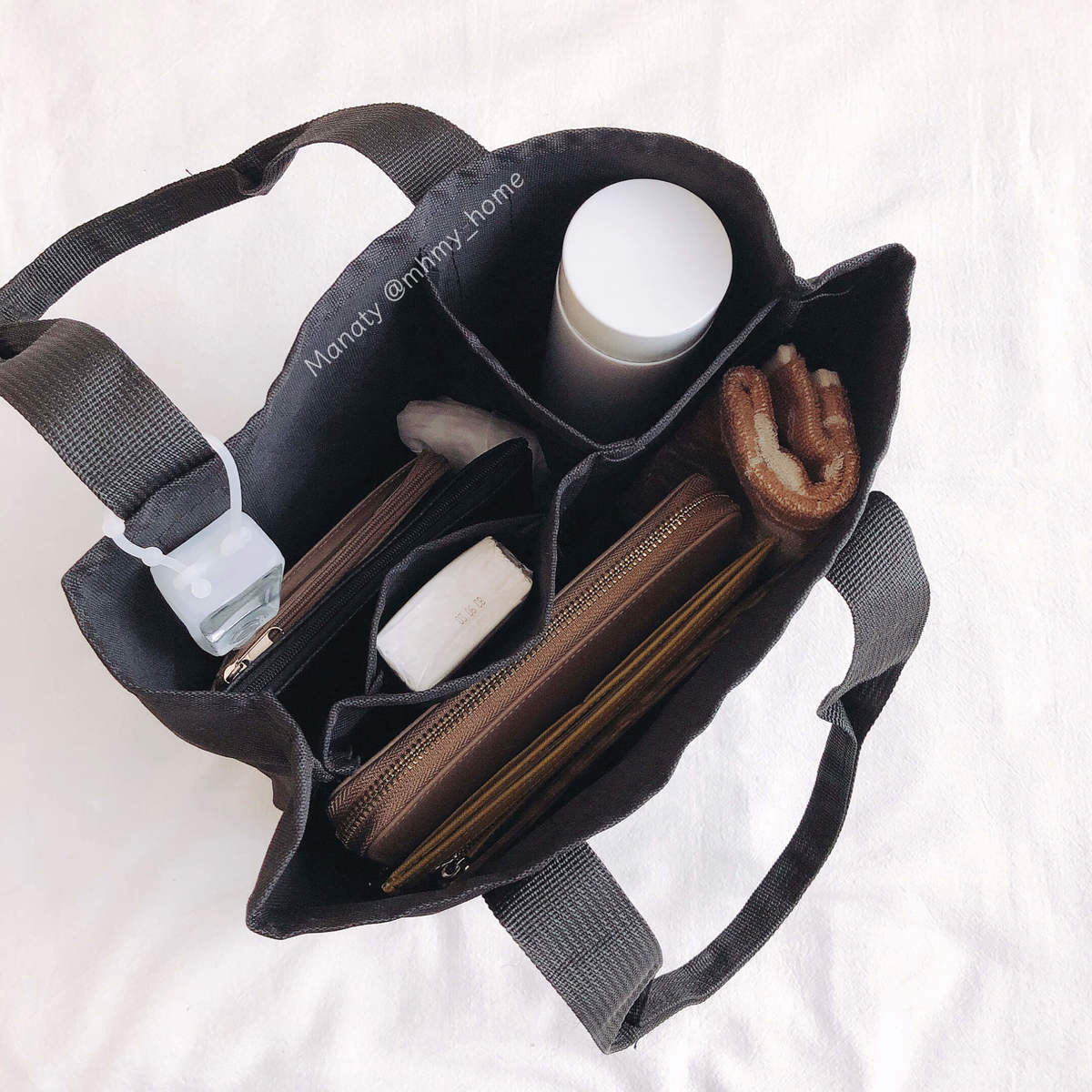 長財布も入る大きさですし、仕切りのお陰で中のものが散らからないのが魅力的。サブバッグやおむつバッグとしても良さそうです。