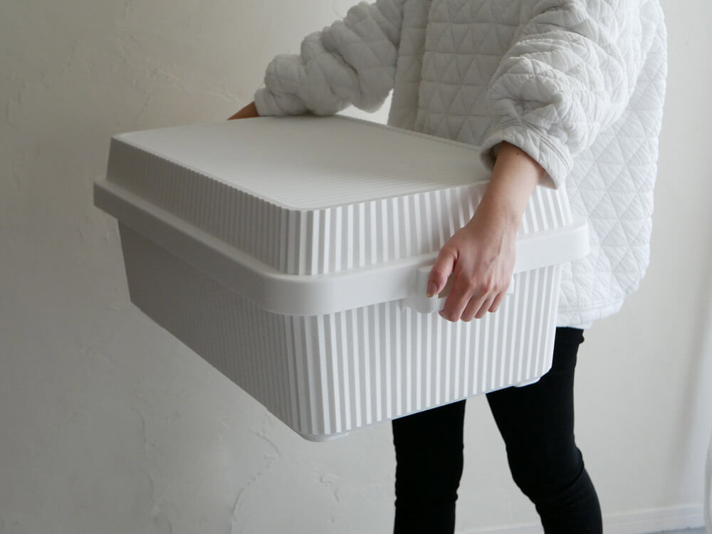 約70×42cmの程よい大きさのコンテナーは室内の収納空間にも難なく収まるから◎。(ご購入前にサイズ確認をしてくださいね。)