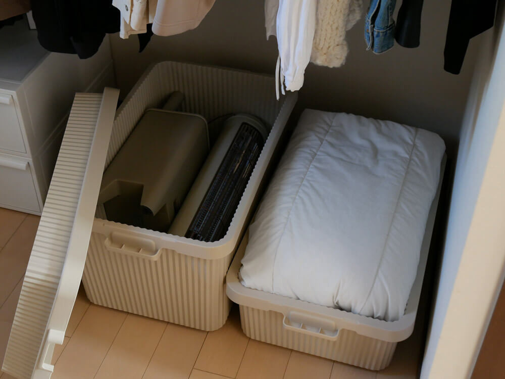 嵩張る衣類や場所を取る季節家電、冬物布団などを丸ごと入れられるのが嬉しい!また大切に収納したい季節の行事グッズなどの収納にも最適。