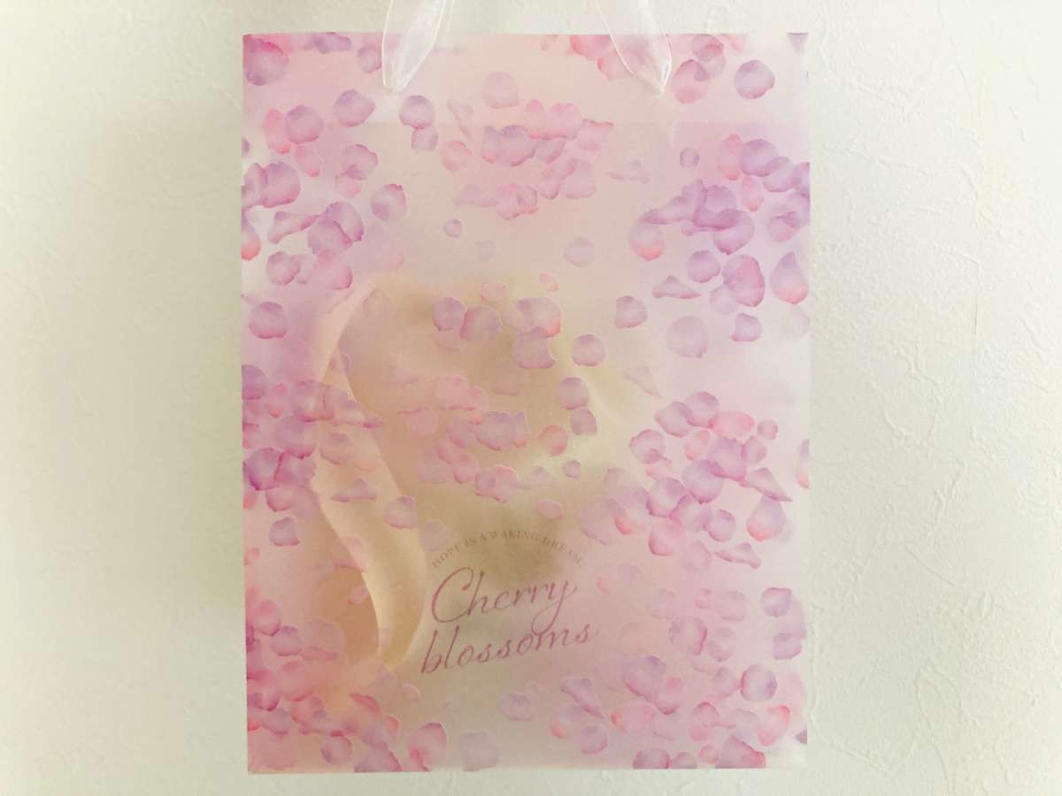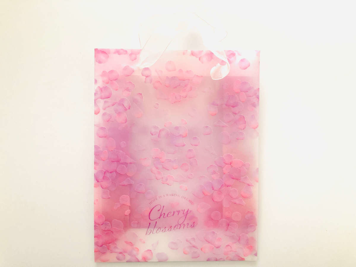 ダイソーの春色アイテムの中でも特に美しさを放っていたのが、「フロスト手提バッグ ペタル 110円(税込)」です。透け感のある素材と淡い色合いが春らしいですね♪