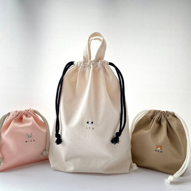 手縫いの刺繍にほっこりしちゃうデザインで、名入れすることでさらに可愛さが増す「手刺繍の名入れグッズ」。手刺繍なので、各作品で表情が違うのも愛らしい作品ですよ。刺繍とお好きなカラーがマッチしたら、即ポチしちゃうアイテムですね!