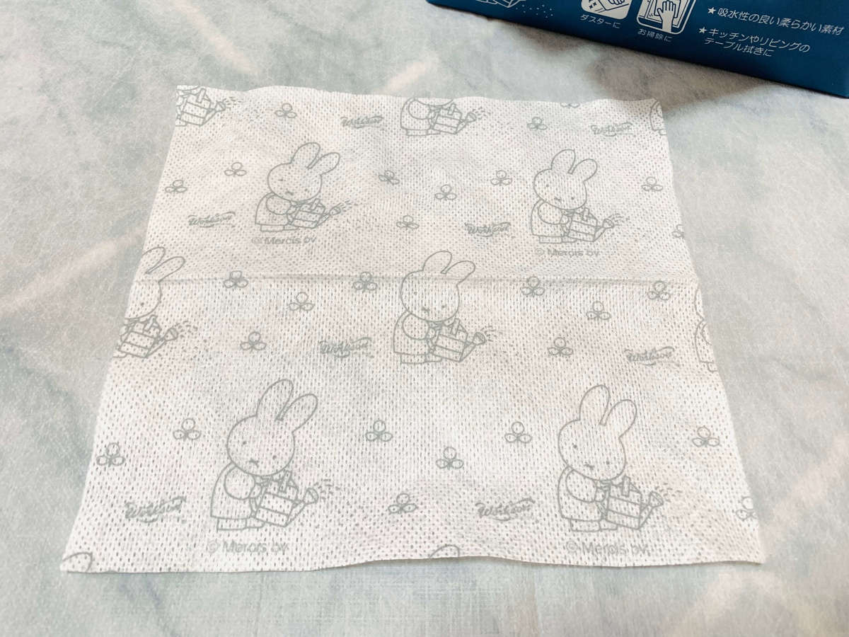こちらは、SNSで「開けてびっくり!可愛すぎる」「コスパ最高」と話題になり、発売当初から再販を繰り返している「ミッフィー柄不織布ダスター」(330円税込)。