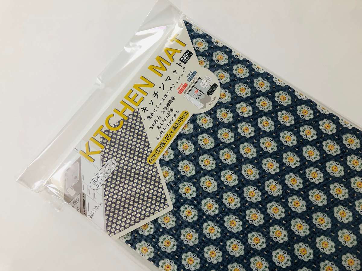 こちらは、レトロ柄に惹かれて購入した「キッチンマット」(330円 税込)。冬はあたたかく、夏は涼しく使えるスポンジクッションです。