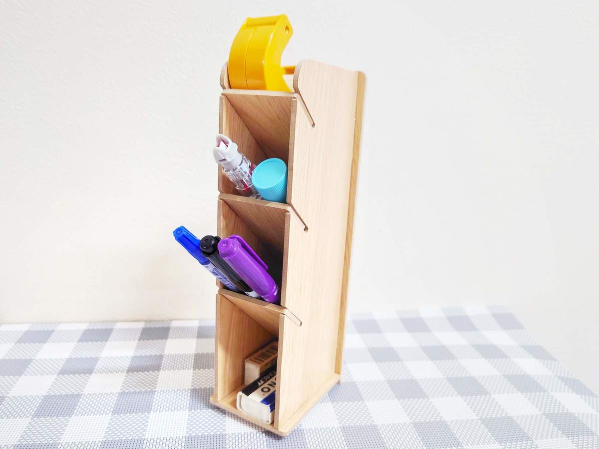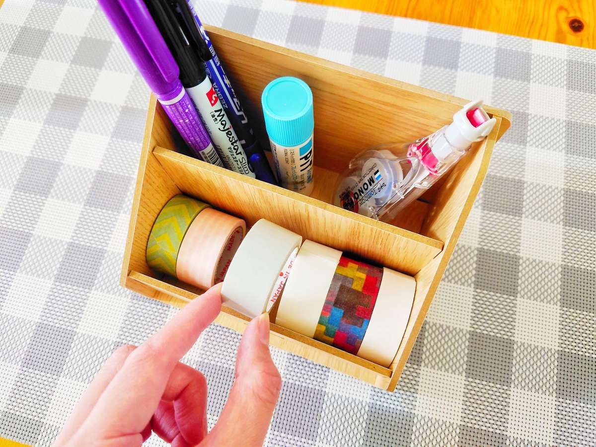 ペンだけではなく、上の段にはテープを置いてもいいですね。