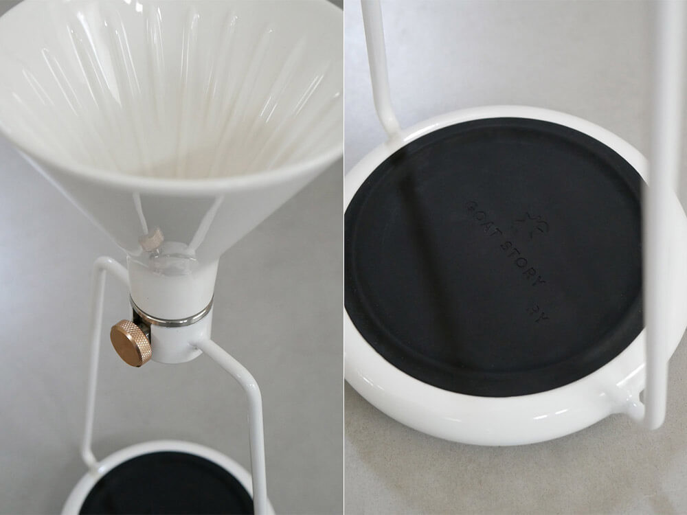 ルックスはスタイリッシュで都会的なコーヒードリッパー。カウンターや食卓に置いても場所を取らずに素敵に置けるのも魅力。