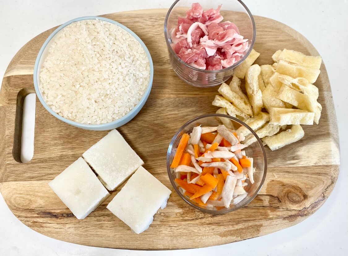 おこわ風炊き込みご飯の作り方①お餅や具材を切る