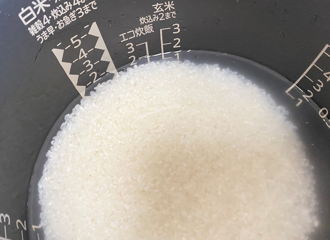 いつも通りお米(2合)を研ぎ、浸水させます!水も炊飯器の規定量ぴったりに注ぎました。