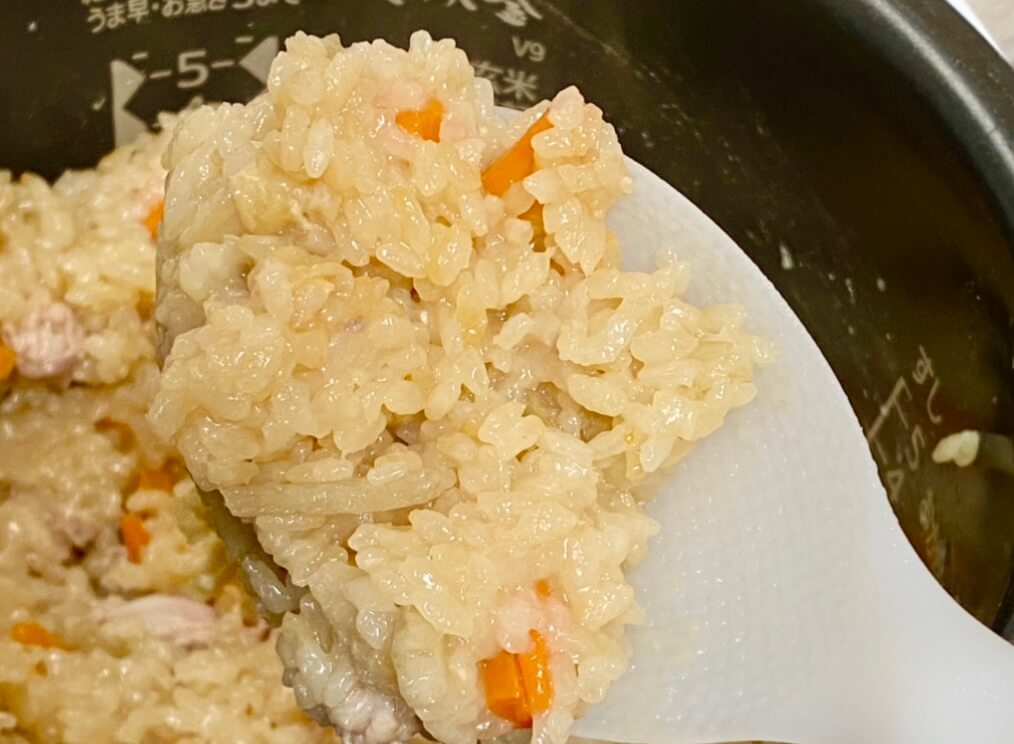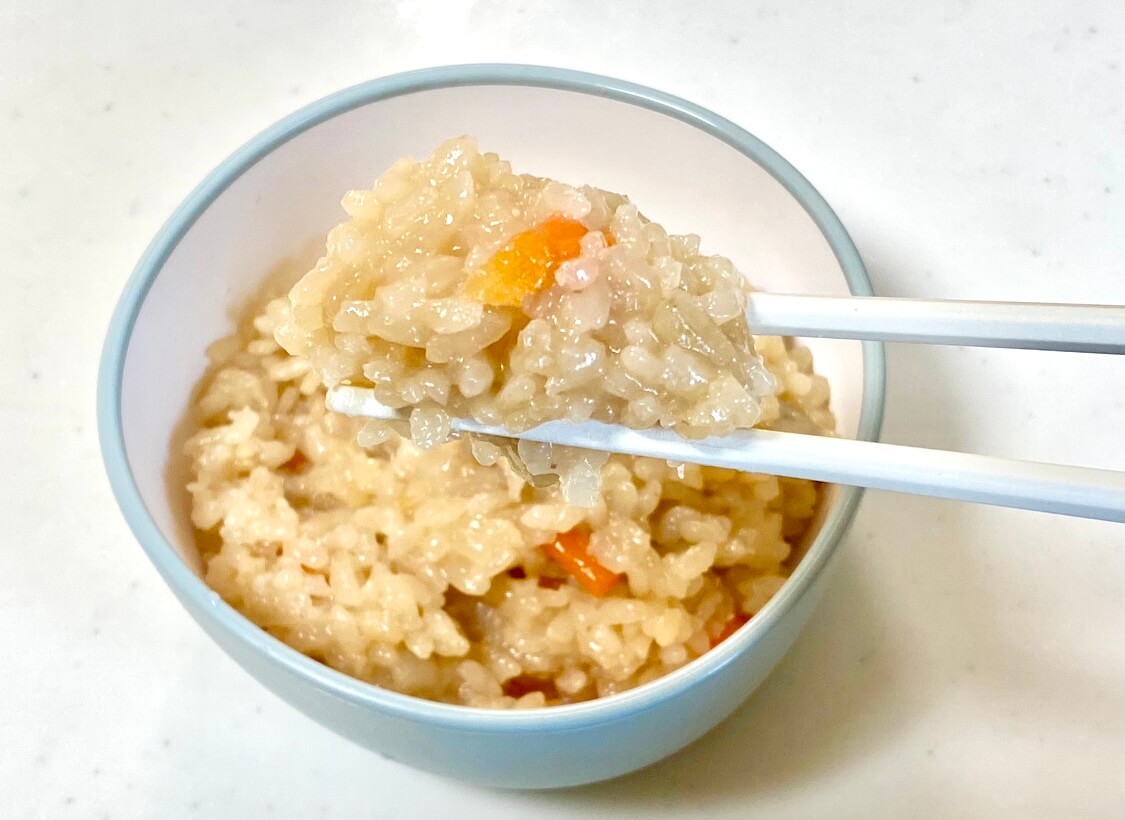 食べてみると、お米一粒一粒にお餅のもちもち感と調味料の味が染み込んでいて、しっかりと"おこわ風"になっているから驚き!