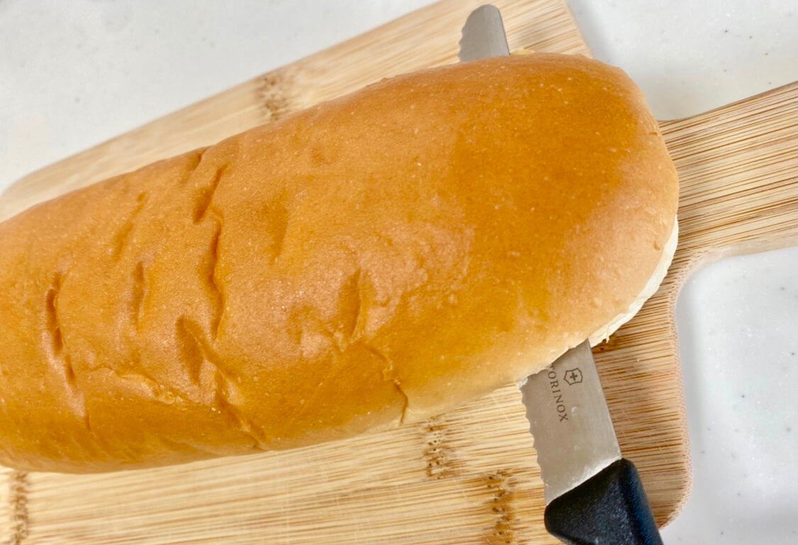 まるごとバナナコッペパン①コッペパンを上下に切り分ける
