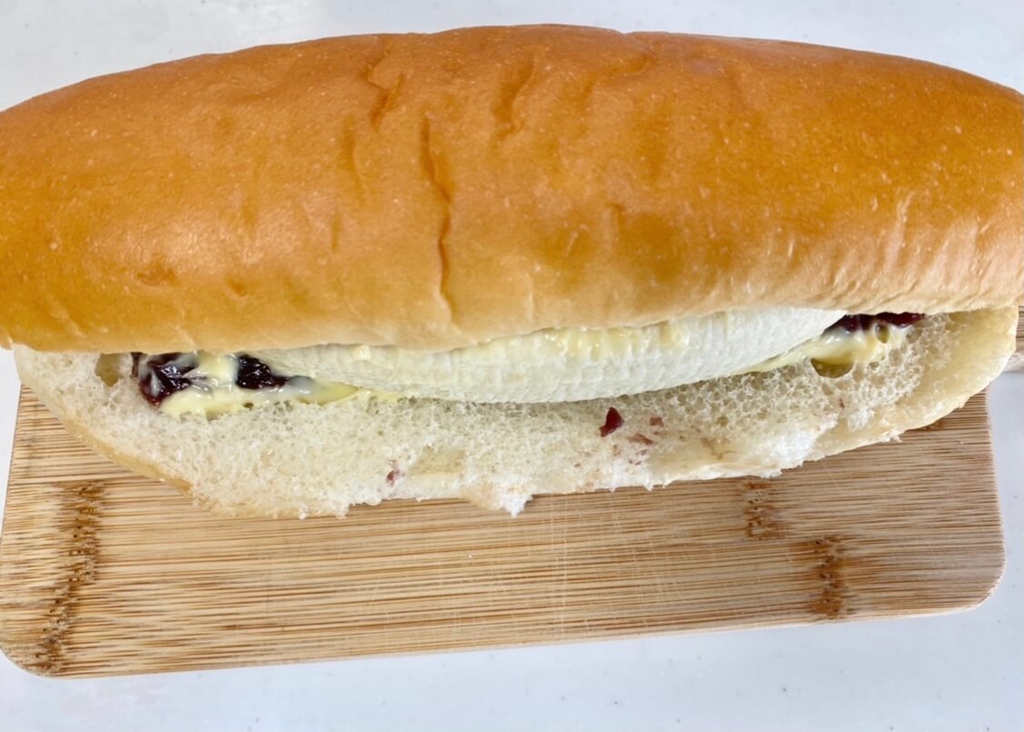 馴染ませたことで、バナナがしっかりとコッペパンにくっついていますよね。