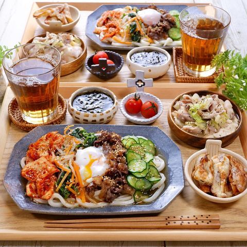 これ一品でお腹いっぱいになれる、ボリューミーなぶっかけうどん。ナムル・お肉・キムチなど、たっぷり具材も乗っていて満足度200%。子供からも「おかわり」が止まらなくなる、激うまメニューです。(調理時間:20分※作り置きで時短)