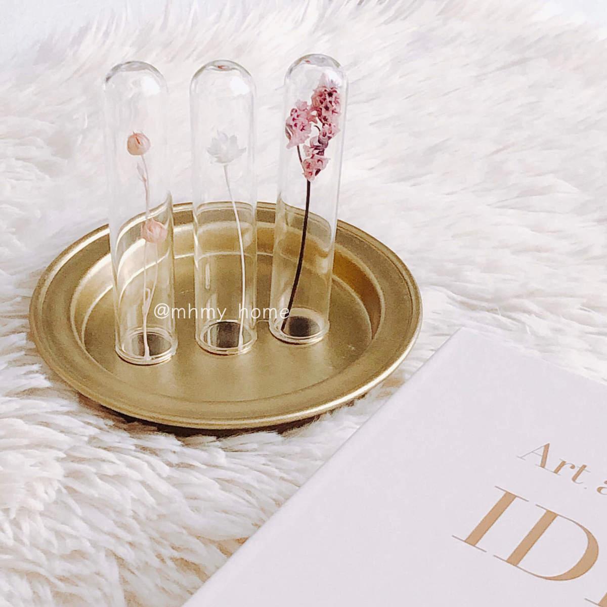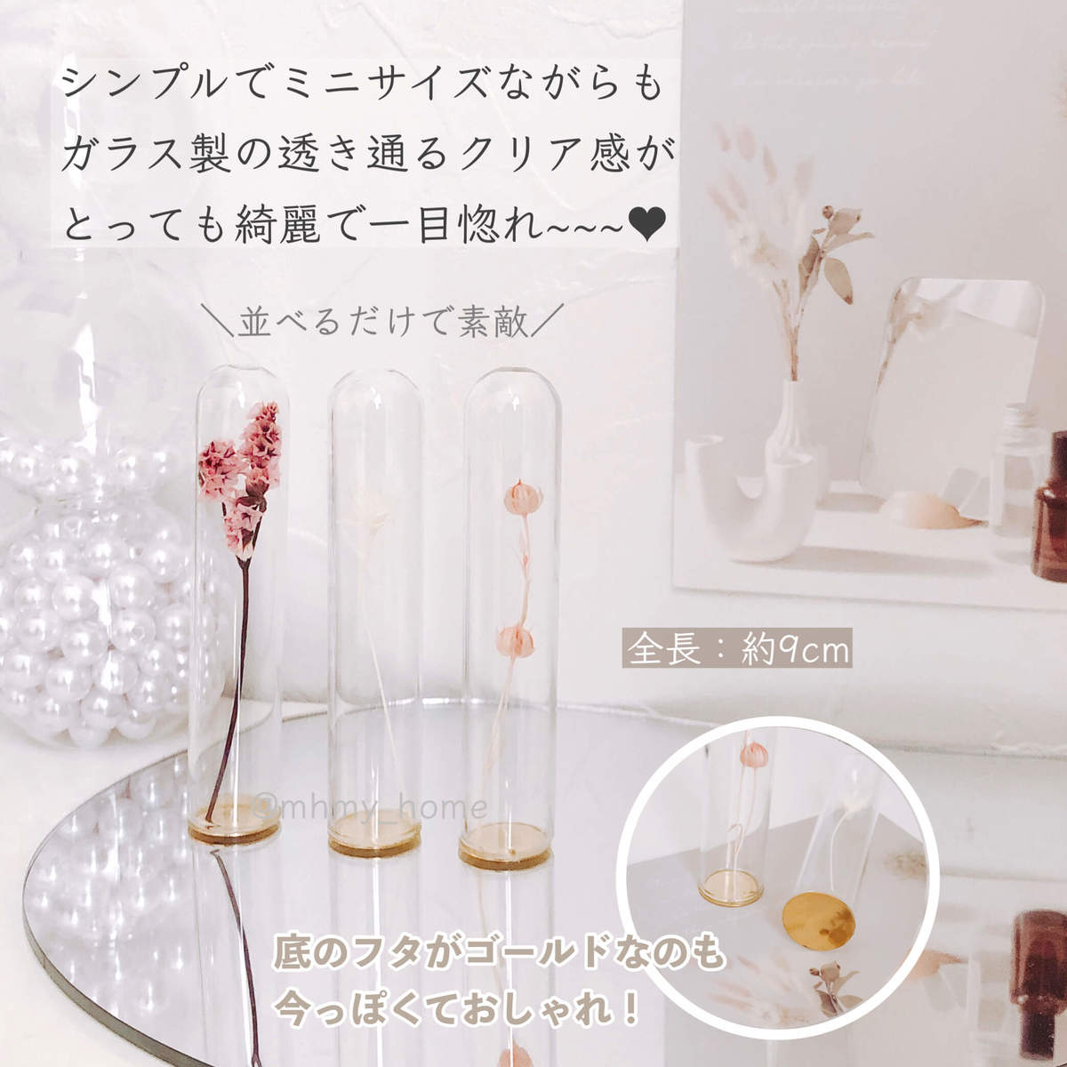 シンプルなミニサイズ、ガラス製の透き通るクリア感がとってもきれいで一目惚れ……♡3つ並べて飾っていますが、並べるだけでうっとり。