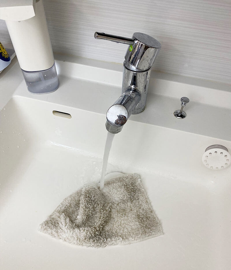 洗面所で軽く洗ったら、マット類と一緒に洗濯機へ。繰り返し使えるのもエコです。
