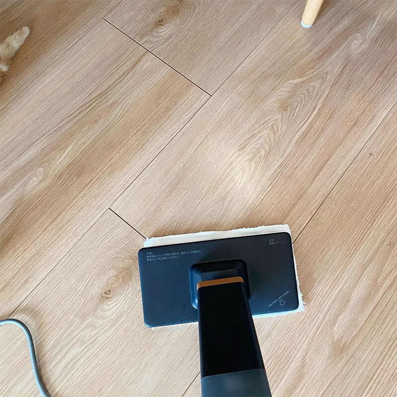 我が家は油性のガラスコーティングをかけているので問題ありませんが、素材によってはスチームモップが使えない床もあります。