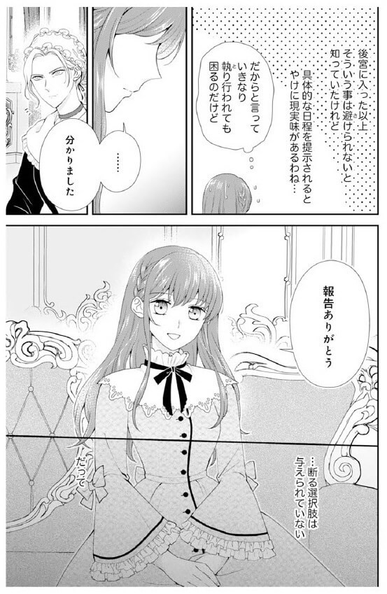 後宮歴10年の最古参にもかかわらず、年齢的な問題から正式な側室としては認められていなかったローズマリー。もし『閨の儀』を果たしてしまえば、本当に後宮から出られなくなってしまう!