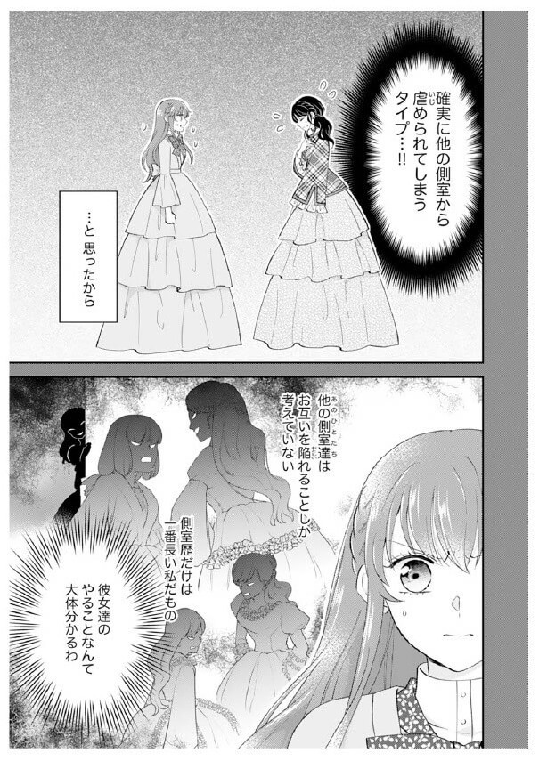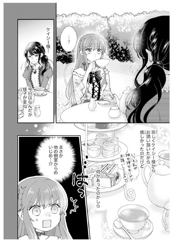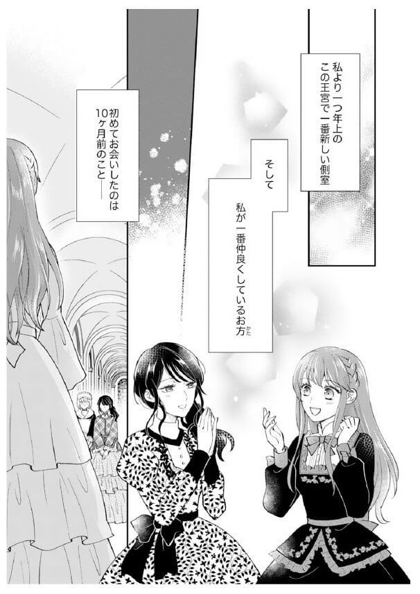 ※このコミックは書籍『私、愛しの王太子様の側室辞めたいんです!1』(作画:悦若えつこ、原作:天織みお)の内容を一部掲載しています。