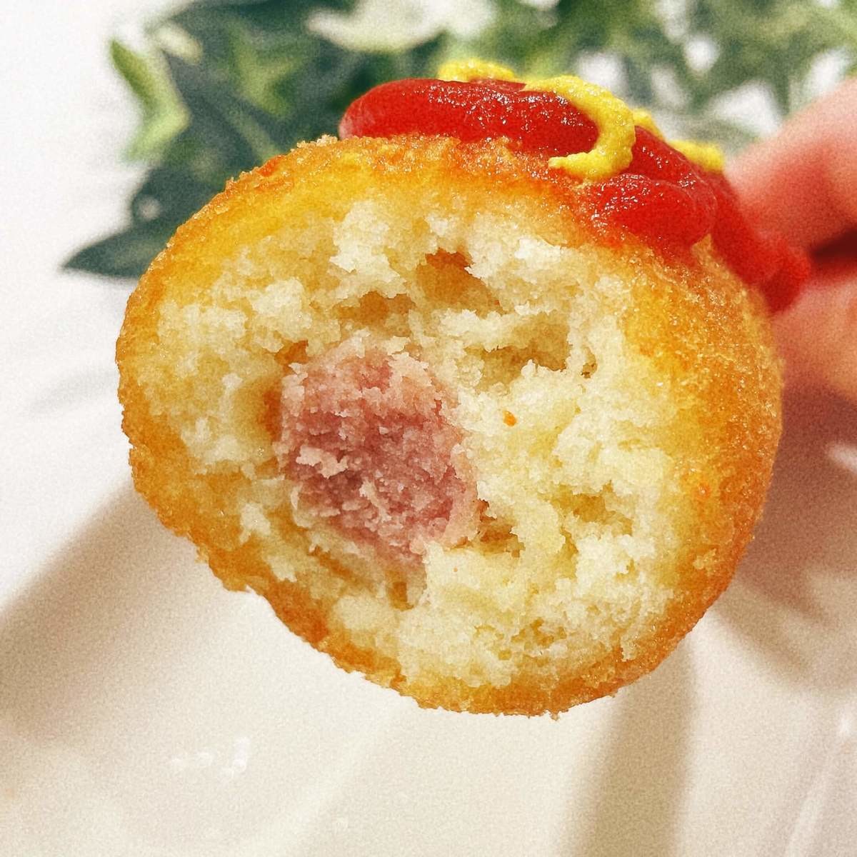 断面はこんな感じでふわふわの生地にジューシーなソーセージが入っています。