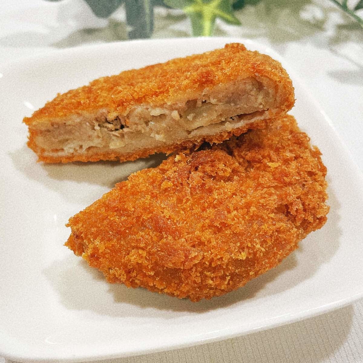 切ってみると、中にカニとクリームソースがたっぷり♡ カニは高級食材なので缶詰で買うのでもお高い! 美味しいお惣菜で食べられるなんて感動です。