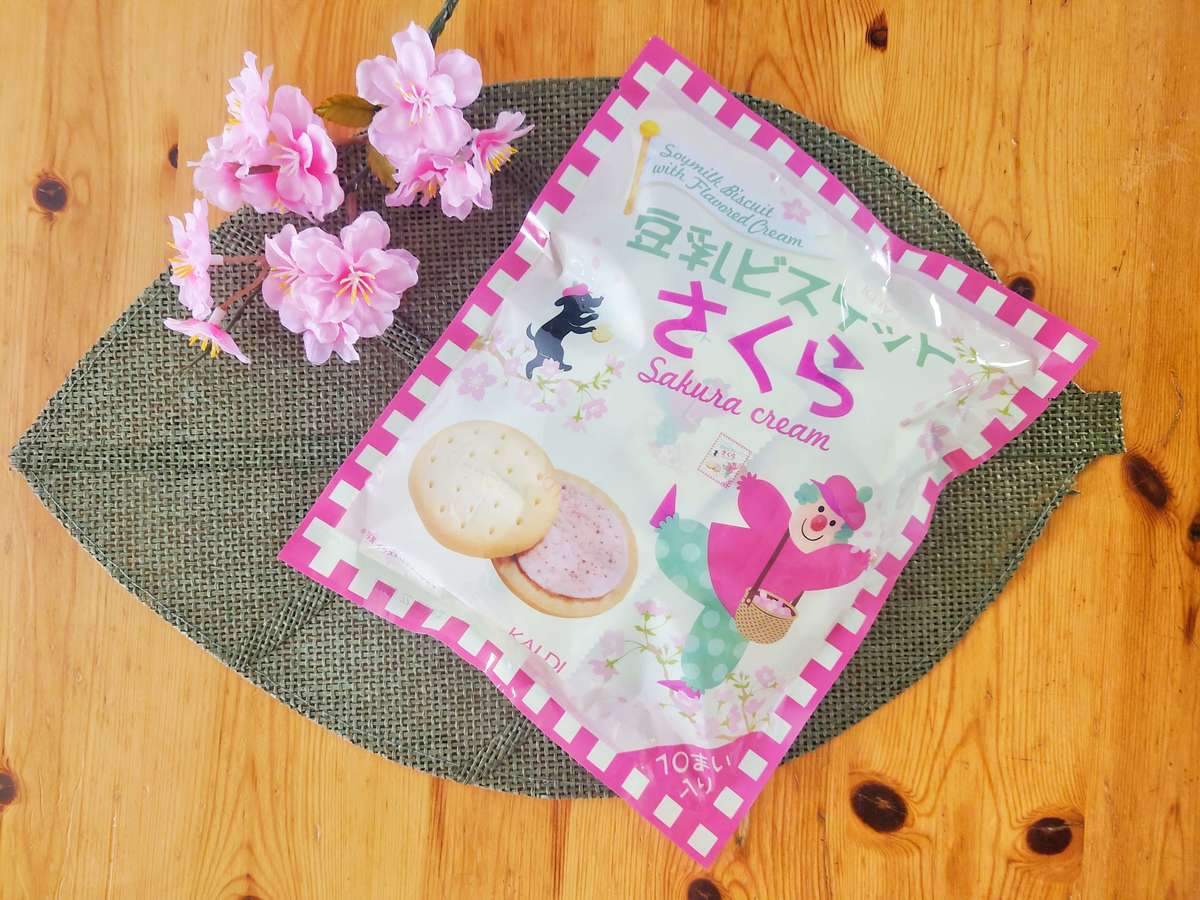カルディに通年常備されている人気商品、豆乳ビスケットのさくら味です!