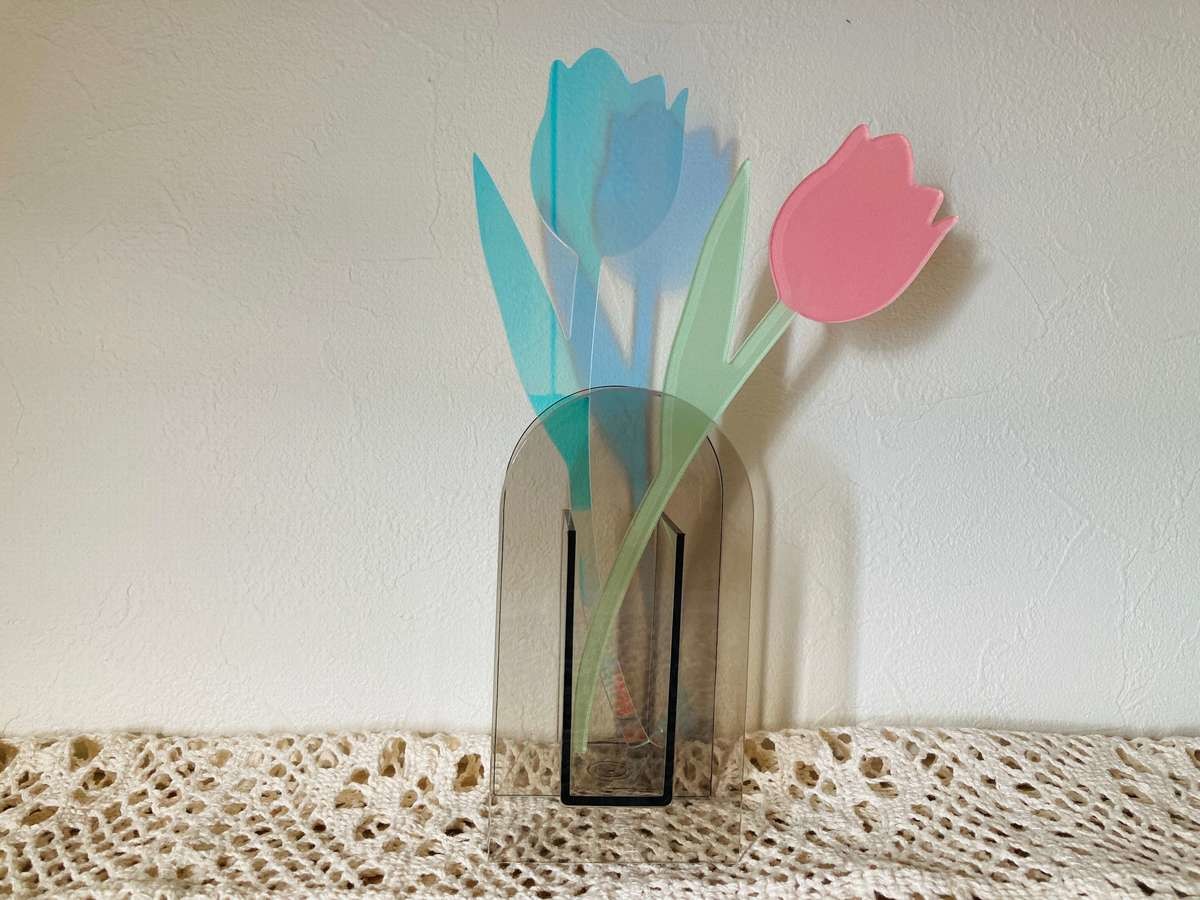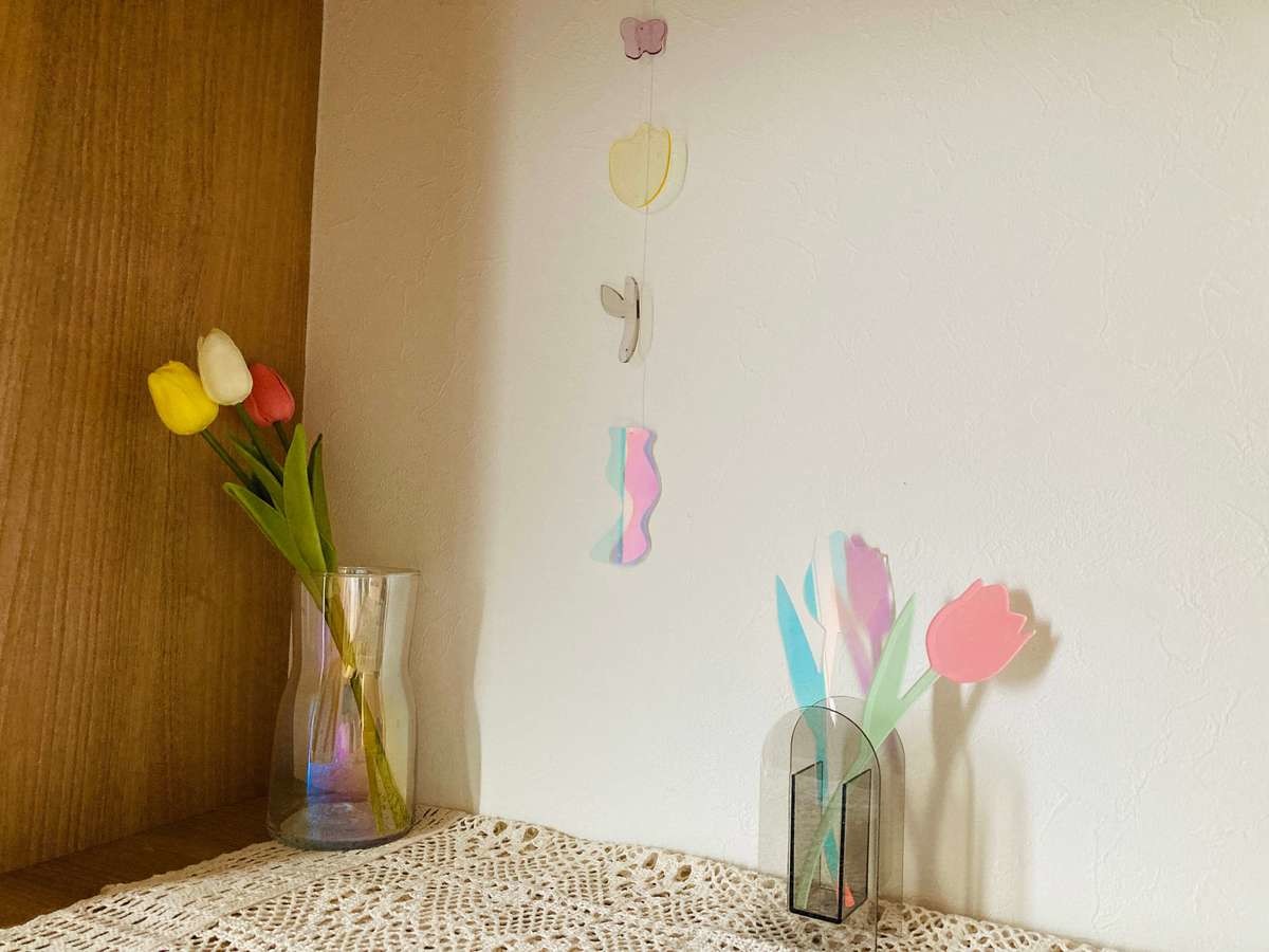 「アクリルフラワー2本セット 330円(税込)」は、オーロラカラーが美しいアクリル製のチューリップ2本セットです。