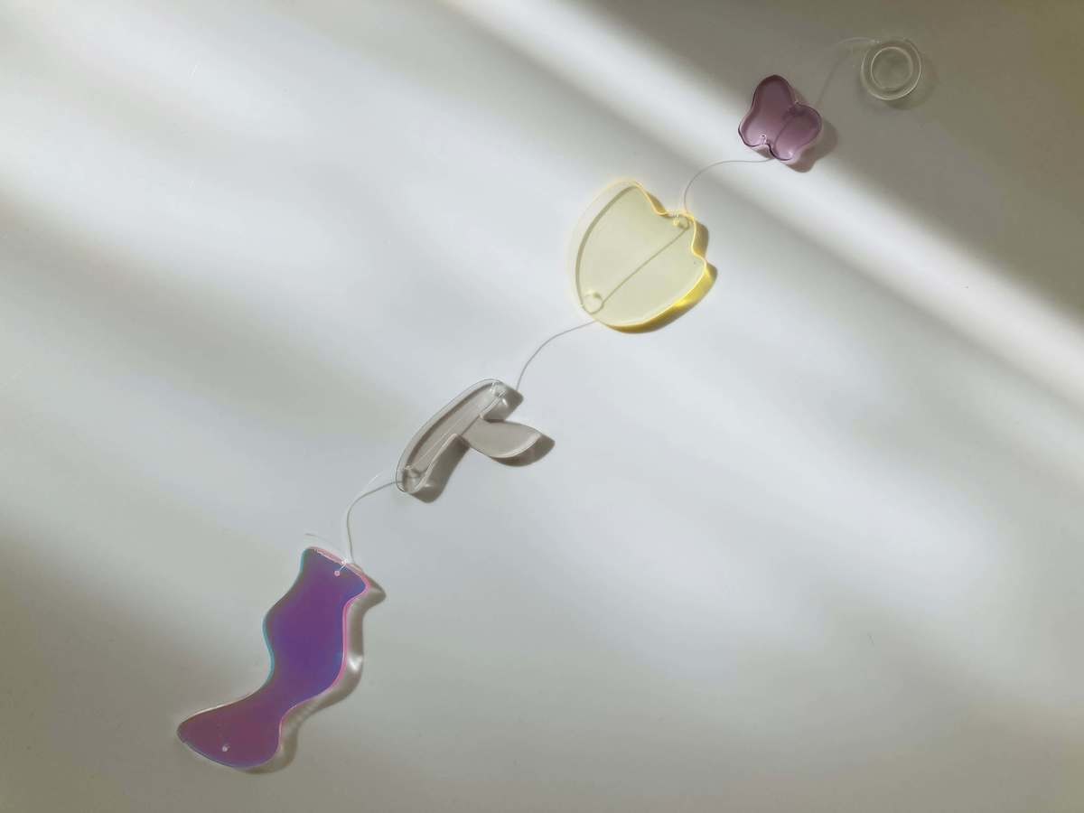 いびつな形がかわいい「アクリルガーランド 330円(税込)」です。透け感のあるアクリル素材で、光に当たるとキラキラと反射します。