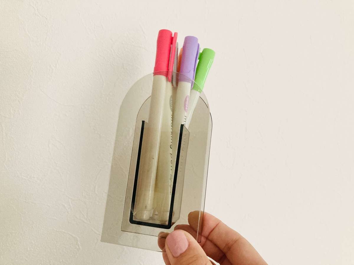 手の平サイズで軽いので、ペン立てとしてもおすすめです。マーカーなら5~6本は入ります。自分用はもちろん、オフィスのデスクやお店の受け付け用にしてもおしゃれですね♪