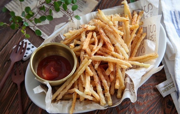 クリスピーポテトは、細くて長くてサクサクの衣が特徴。食卓に出せば秒でなくなる人気ぶり♪ 大人の食べるタイミングがありません(笑)!