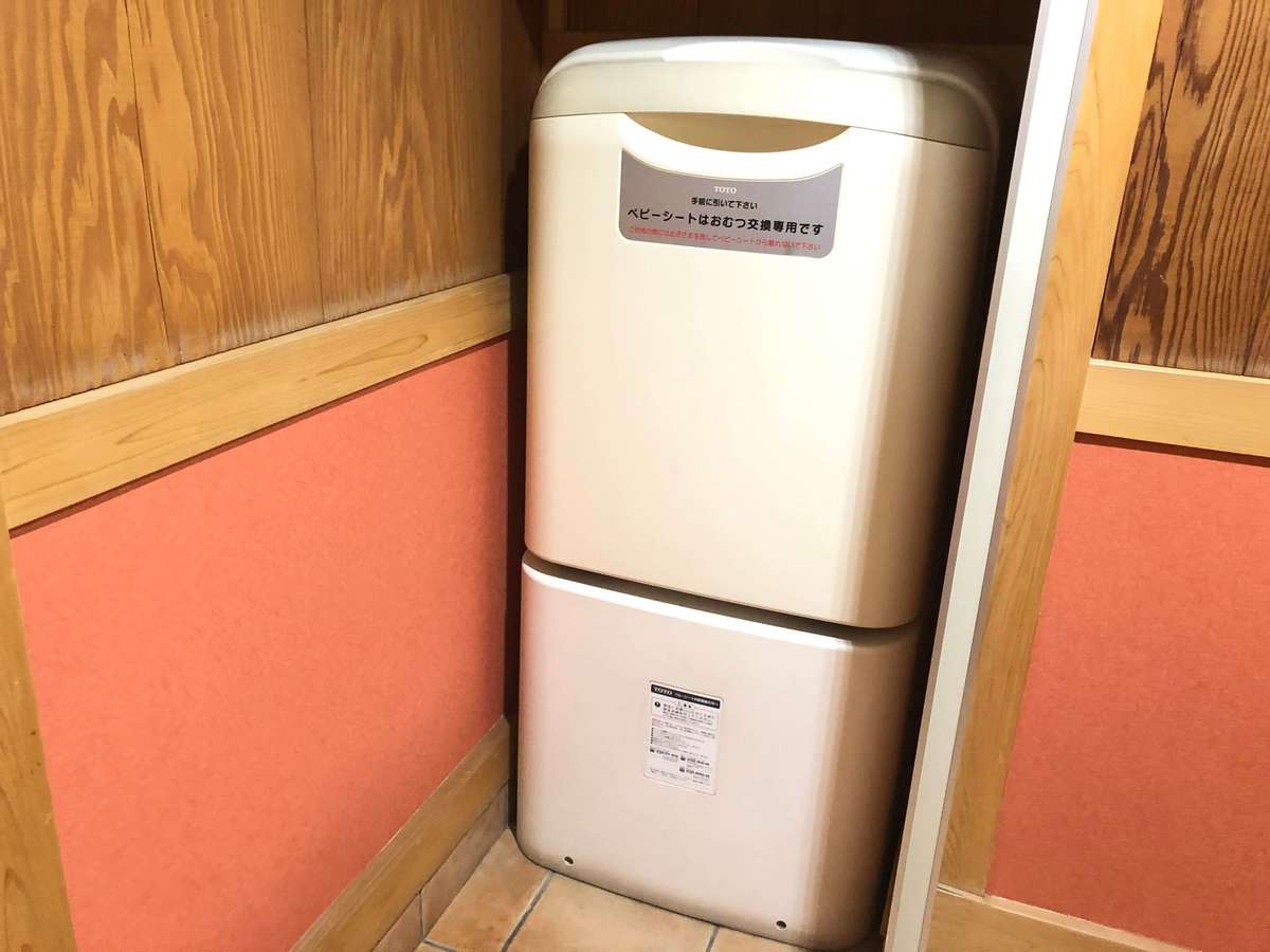 トイレにはおむつ替えシートもあるので、小さい子と一緒でも安心です。