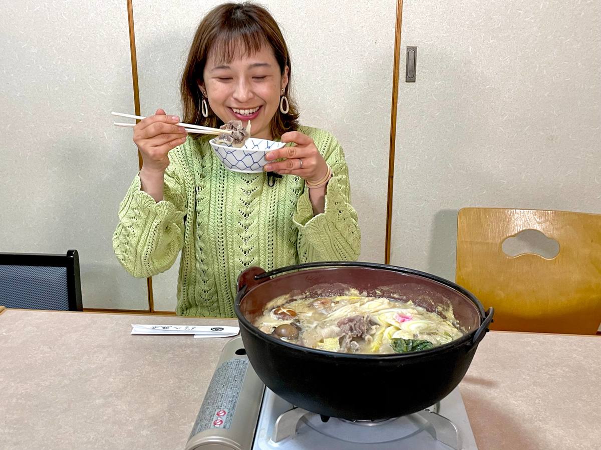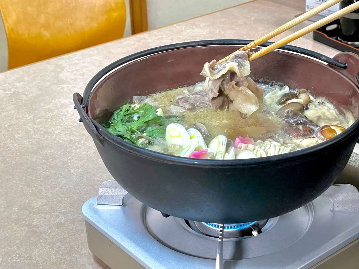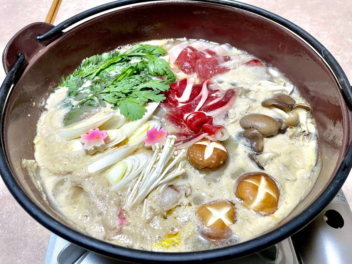 この鍋が、本当においしくて! 豚肉のようでいて、もう少しあっさりした食べやすいお味です。赤みが多く脂身は少なめ。