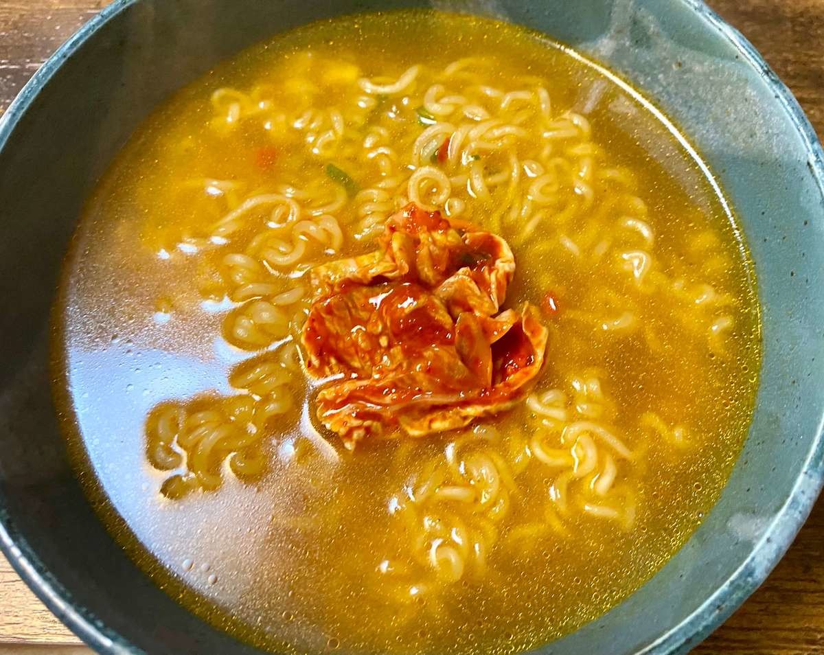 今回はキムチをトッピングしましたが、お好みでとき卵やねぎなどの野菜を追加しても美味しいですよ!