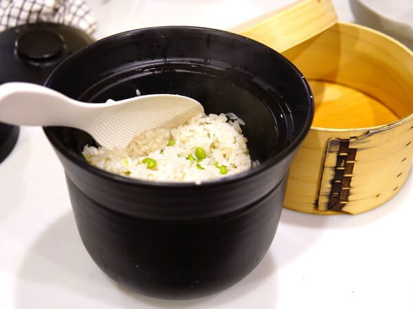 炊きあがったら、好みでねぎやごま、大葉など薬味を入れるとさらにおいしいです。