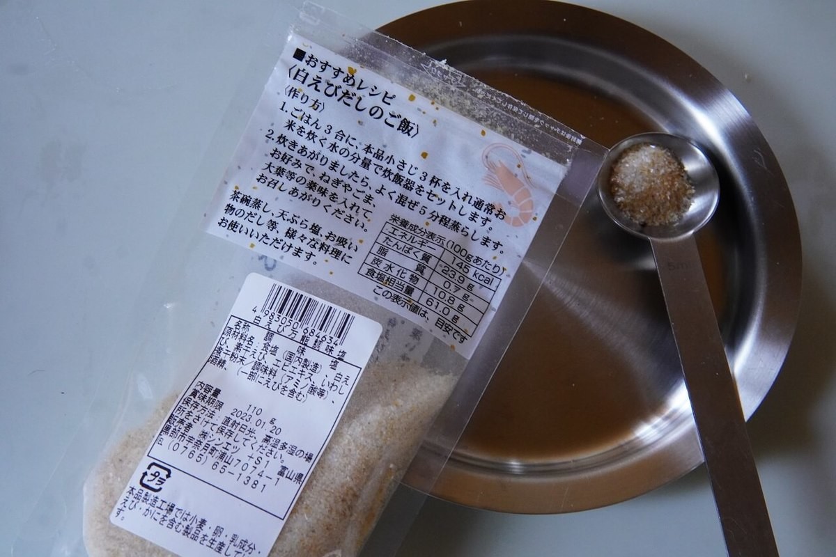 ごはん3合に、「白えび万能調味塩」を小さじ3杯入れて