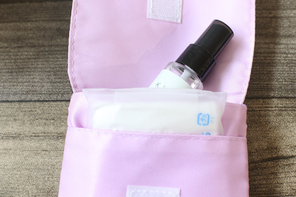 ボトルタイプの除菌スプレーも小さなものなら入ります。ズボンのポケットに入れておくよりも紛失したり漏れたりするリスクを減らせます。