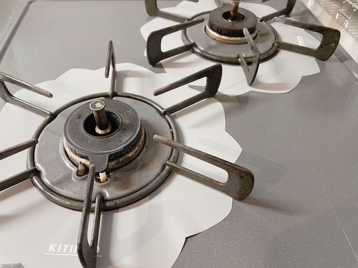 五徳の下に敷くだけで、汚れを防いでくれます。