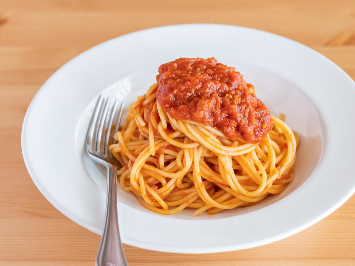 よくある水っぽいソースではなく、ペースト状になったかためのソースがパスタによく絡みかなりおいしいです。