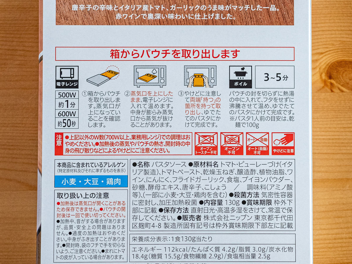 パッケージ裏にはソースの温め方が詳細に書かれていますので、温める際は要チェックです!